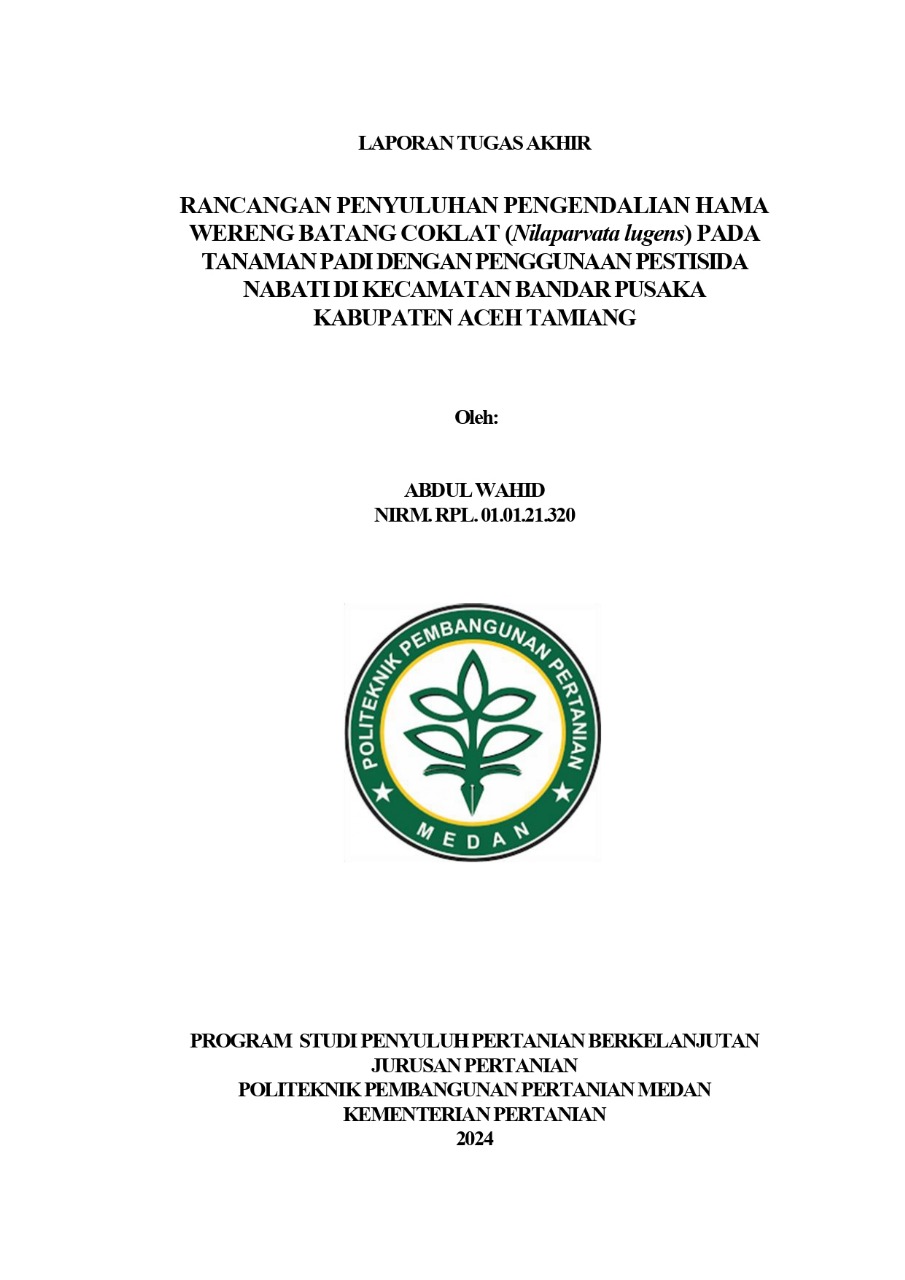 Rancangan Penyuluhan Pengendalian Hama Wereng Batang Coklat (Nilaparvata Lugens) Pada Tanaman Padi Dengan Penggunaan Pestisida Nabati Di Kecamatan Bandar Pusaka Kabupaten Aceh Tamiang