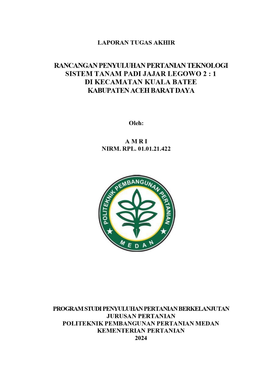 Rancangan Penyuluhan Pertanian Teknologi Sistem Tanam Padi Jajar Legowo 2 : 1 Di Kecamatan Kuala Batee Kabupaten Aceh Barat Daya