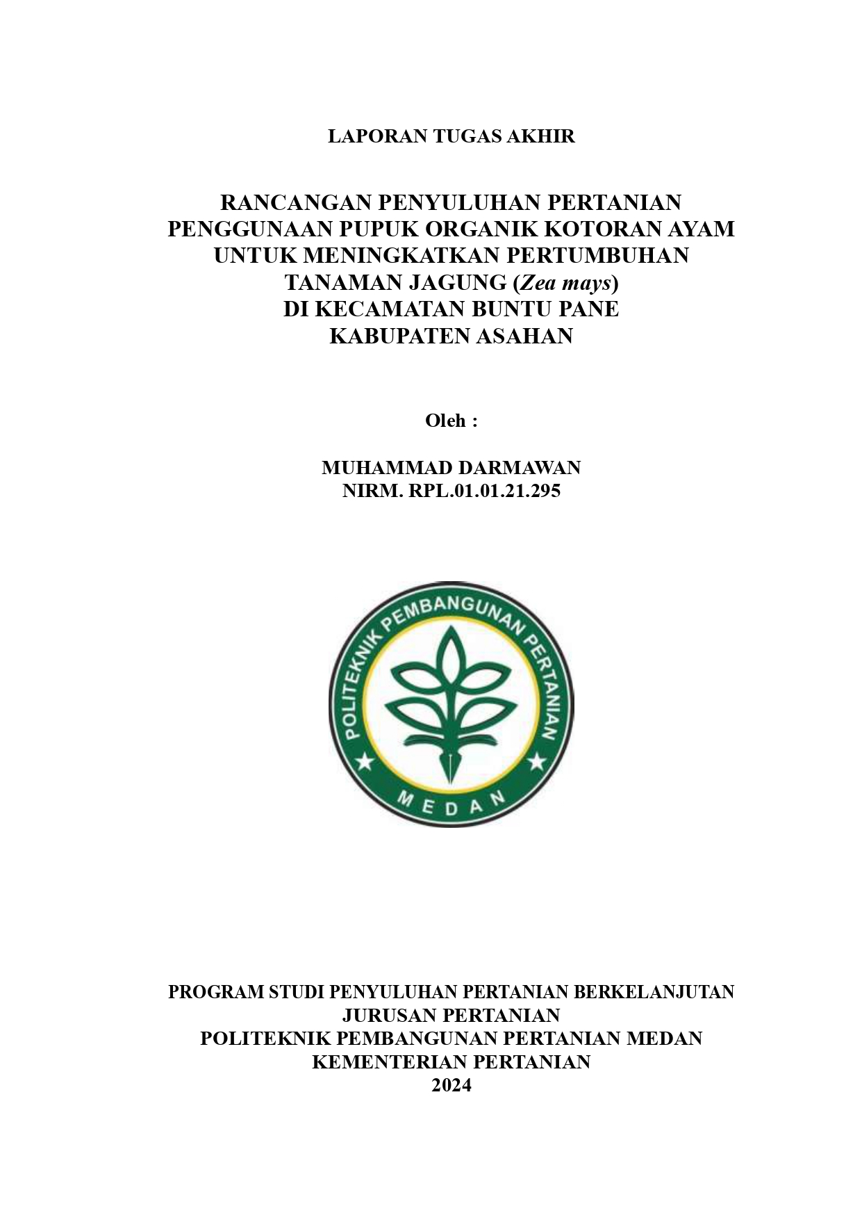 Rancangan Penyuluhan Pertanian Penggunaan Pupuk Organik Kotoran Ayam Untuk Meningkatkan Pertumbuhan Tanaman Jagung (Zea Mays) Di Kecamatan Buntu Pane Kabupaten Asahan