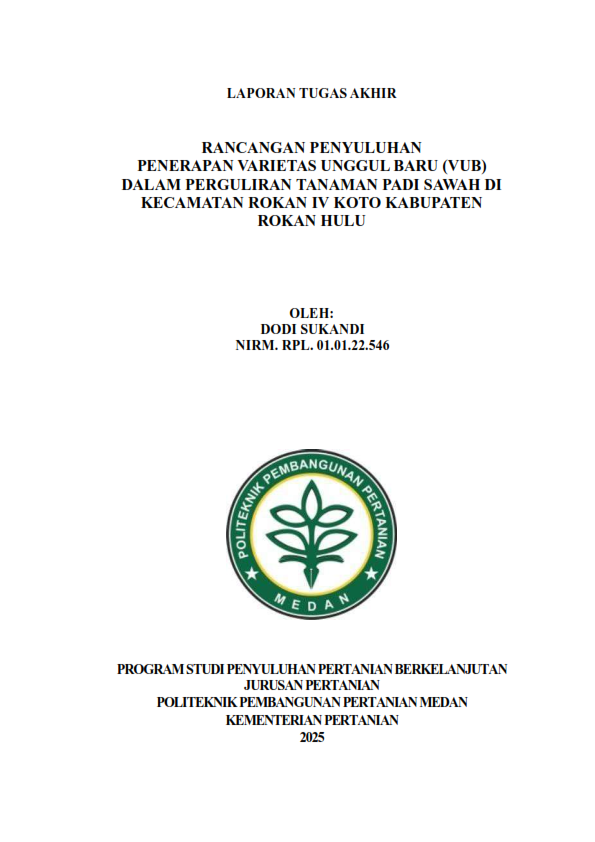 Rancangan Penyuluhan Penerapan Varietas Unggul Baru (Vub) Dalam Perguliran Tanaman Padi Sawah Di Kecamatan Rokan Iv Koto Kabupaten Rokan Hulu