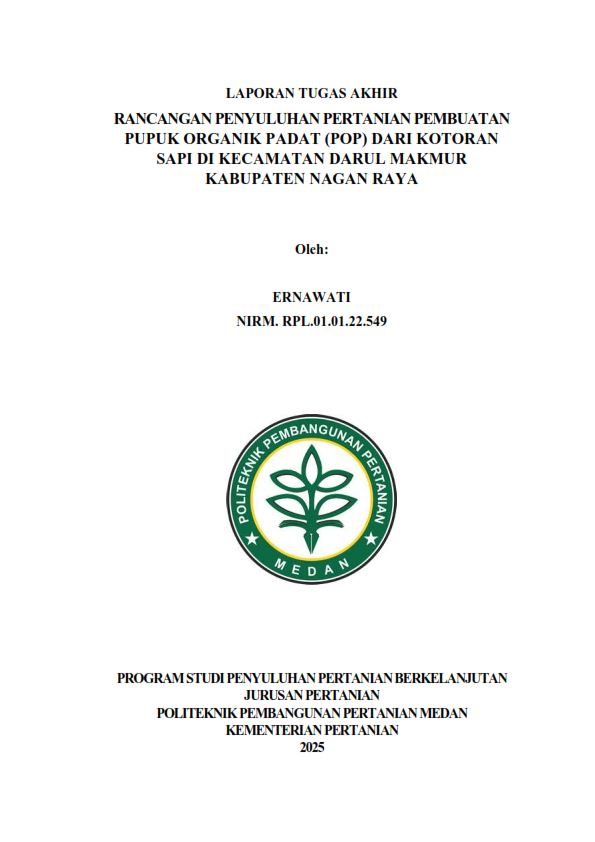 Rancangan Penyuluhan Pertanian Pembuatan Pupuk Organik Padat (Pop) Dari Kotoran Sapi Di Kecamatan Darul Makmur Kabupaten Nagan Raya