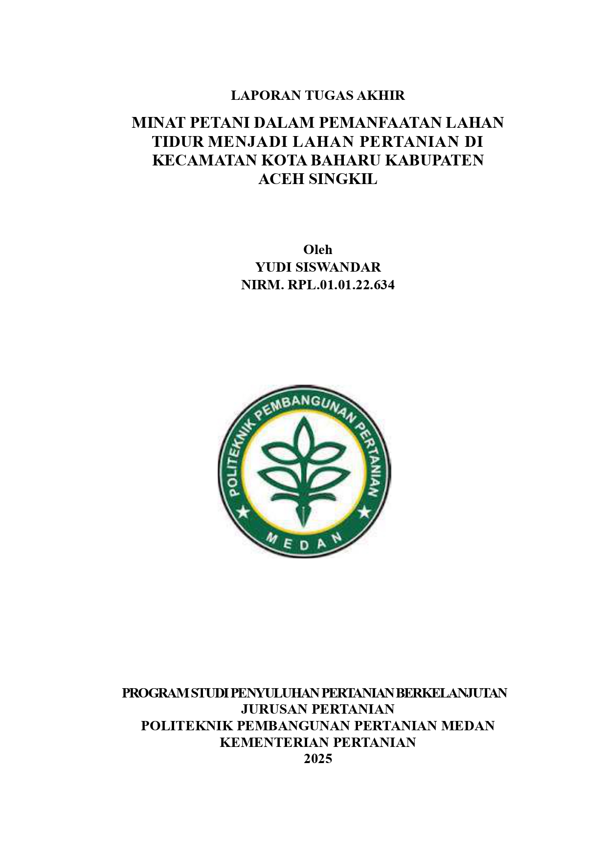 Yudi Siswandar, NIRM.RPL.01.01.22.634. Minat Petani dalam Pemanfaatan Lahan
