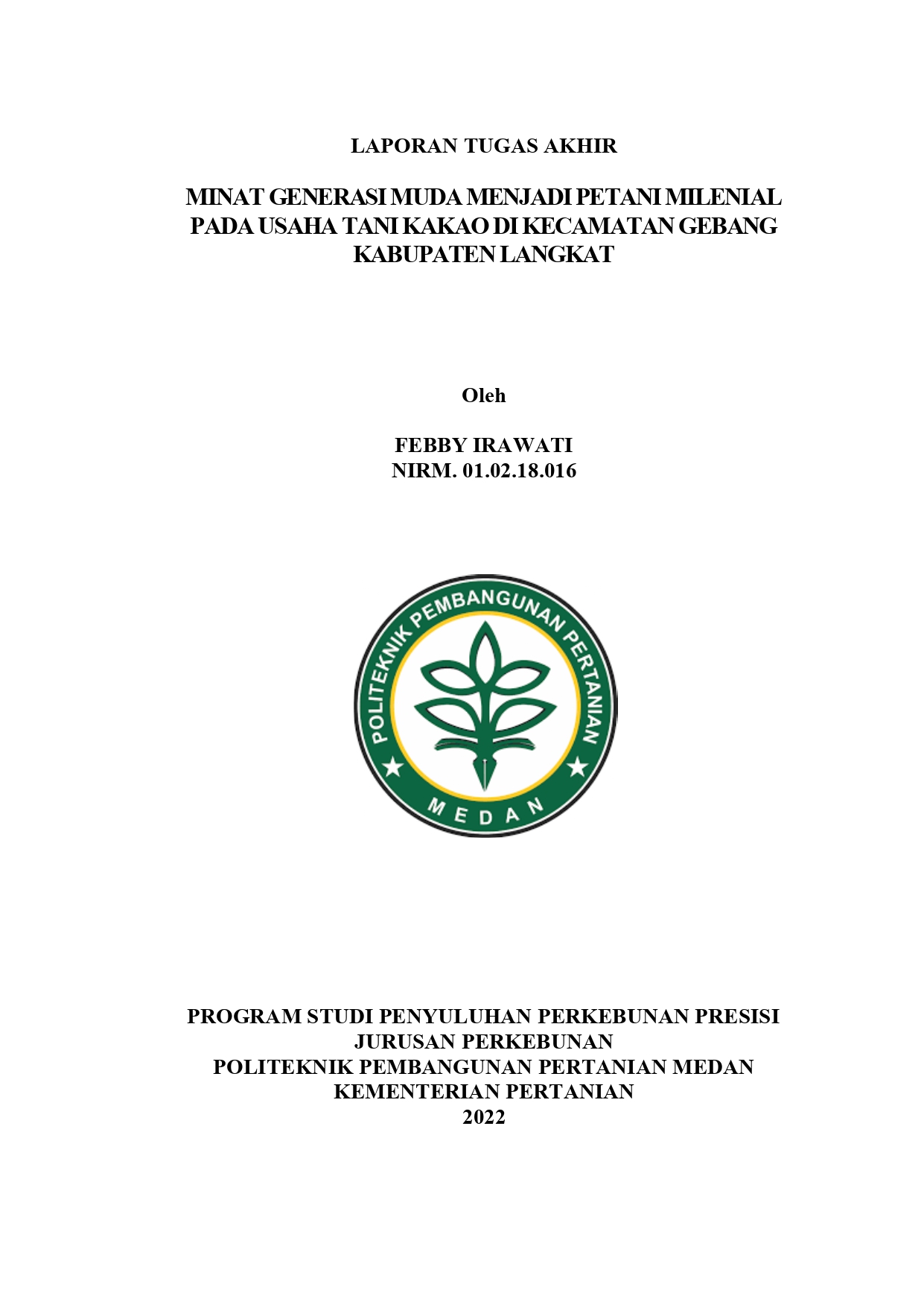 Minat Generasi Muda Menjadi Petani Milenial Pada Usaha Tani Kakao Di Kecamatan Gebang Kabupaten Langkat