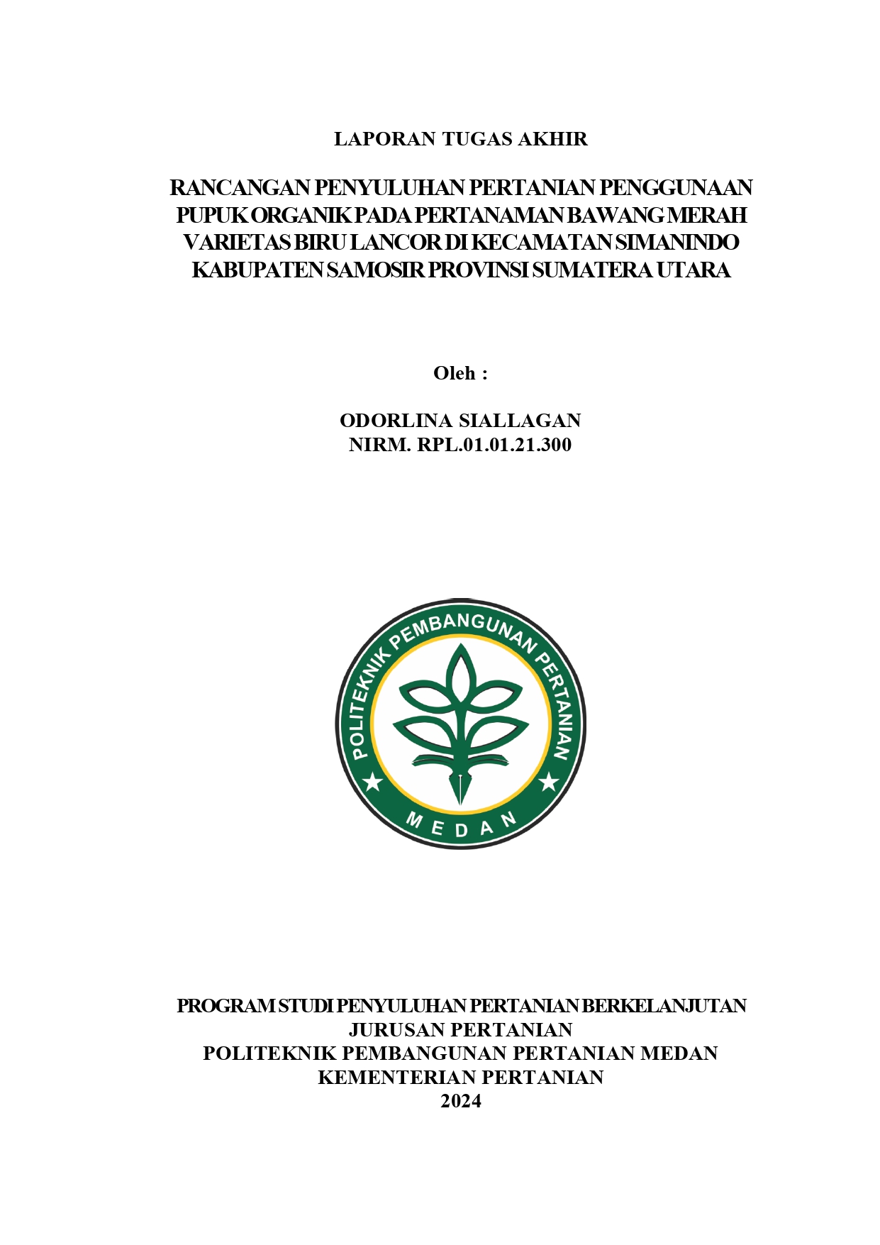 Rancangan Penyuluhan Pertanian Penggunaan Pupuk Organik Pada Pertanaman Bawang Merah Varietas Biru Lancor Di Kecamatan Simanindo Kabupaten Samosir Provinsi Sumatera Utara